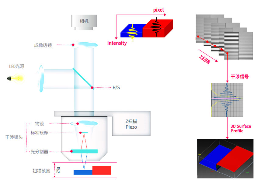 3维形象测量仪利用光的干涉,具备0.1nm高度分辨力,可以纳米单位轻松、 测量 快速、准确地测量1nm~10mm的表面形象。相比接触式方式,不会对测量物造成 丝毫损害,且相比共焦方式,无关透镜倍率,具备相同的高度分辨率, 可准确测量,相比AFM方式,可快速测量更宽的领域。